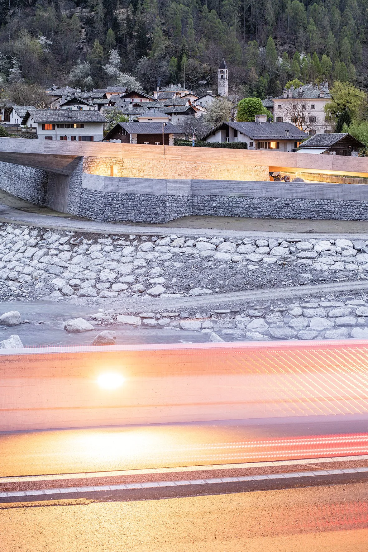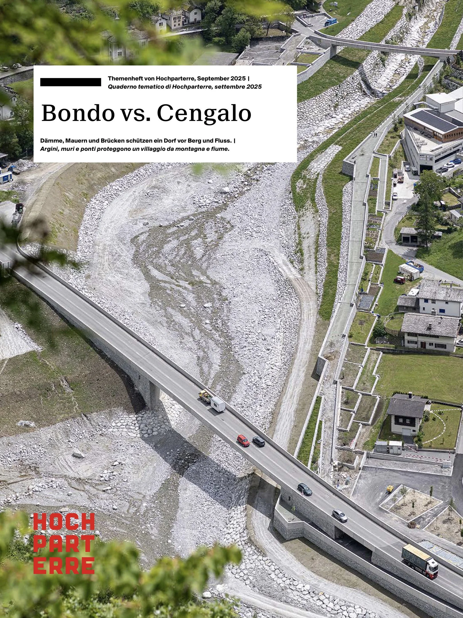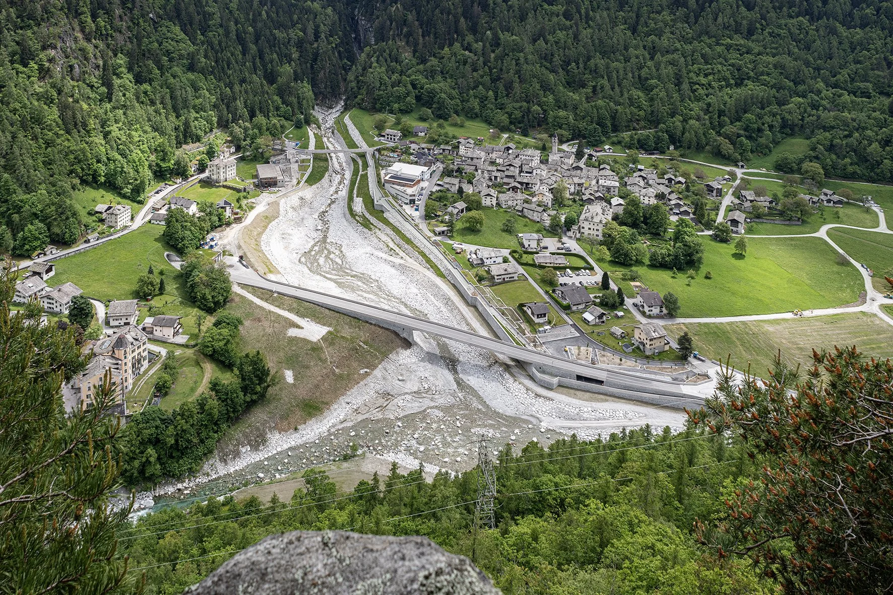Ein Bergsturz im Sommer 2017 – bei dem acht Berggänger ums Leben kamen – zerstörte Teile des Siedlungsgebiets von Bondo sowie Strassenbauwerke im Talkessel. Mit einem Auffangbecken, Dämmen und Brücken sollte das Gebiet vor erneuten Murgängen besser geschützt werden, was tiefgreifende Eingriffe in die Landschaft erforderte. Der Wiederaufbau, konzipiert und geleitet durch ein interdisziplinäres Planungsteam, stiess auf breite öffentliche Anerkennung, sowohl aufgrund der aussergewöhnlichen Ingenieurleistung wie auch der sensiblen Einbettung in die Kulturlandschaft.